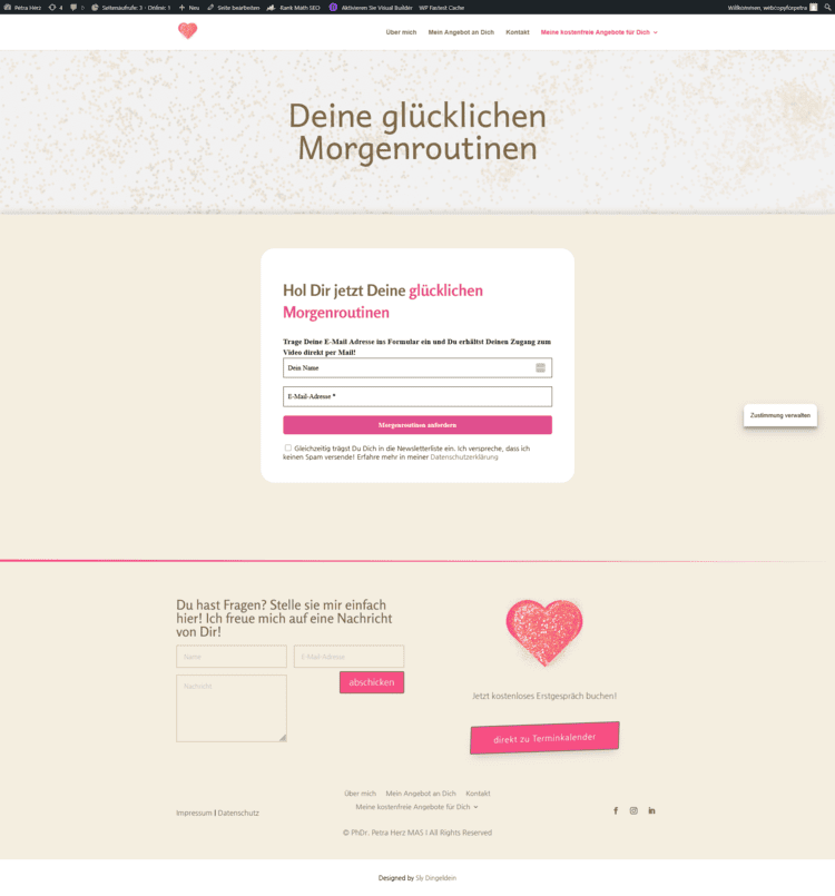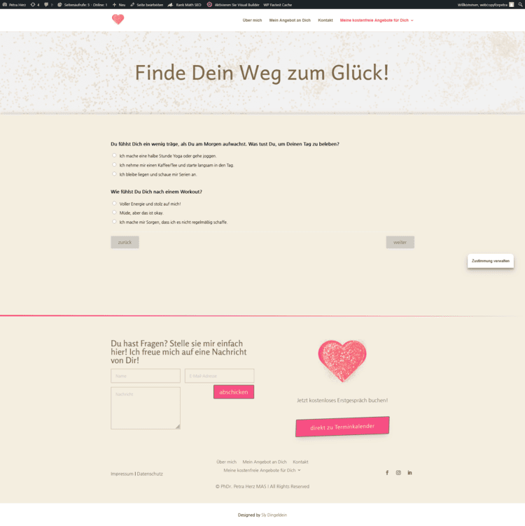 Aktuell betreut Petra die Seite selbst und testet sich rein – und genau dafür ist die Struktur perfekt: sie kann selbst weiterarbeiten, ohne dass alles auseinanderfliegt.