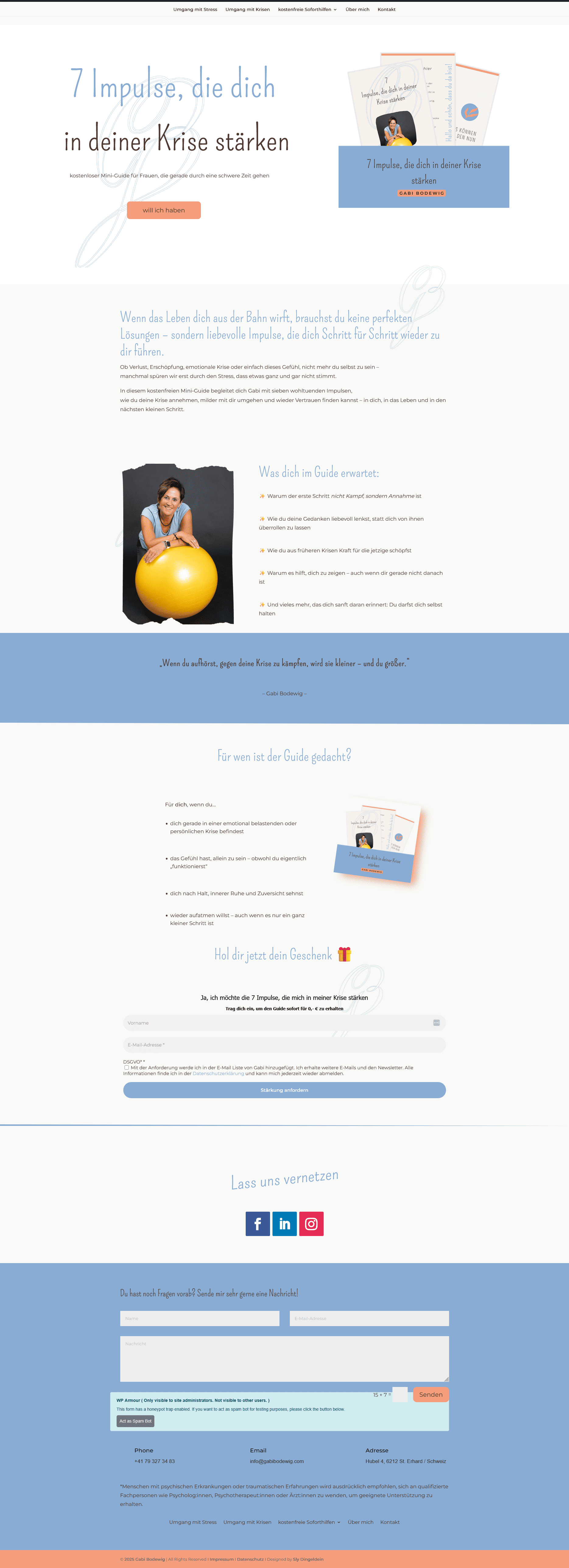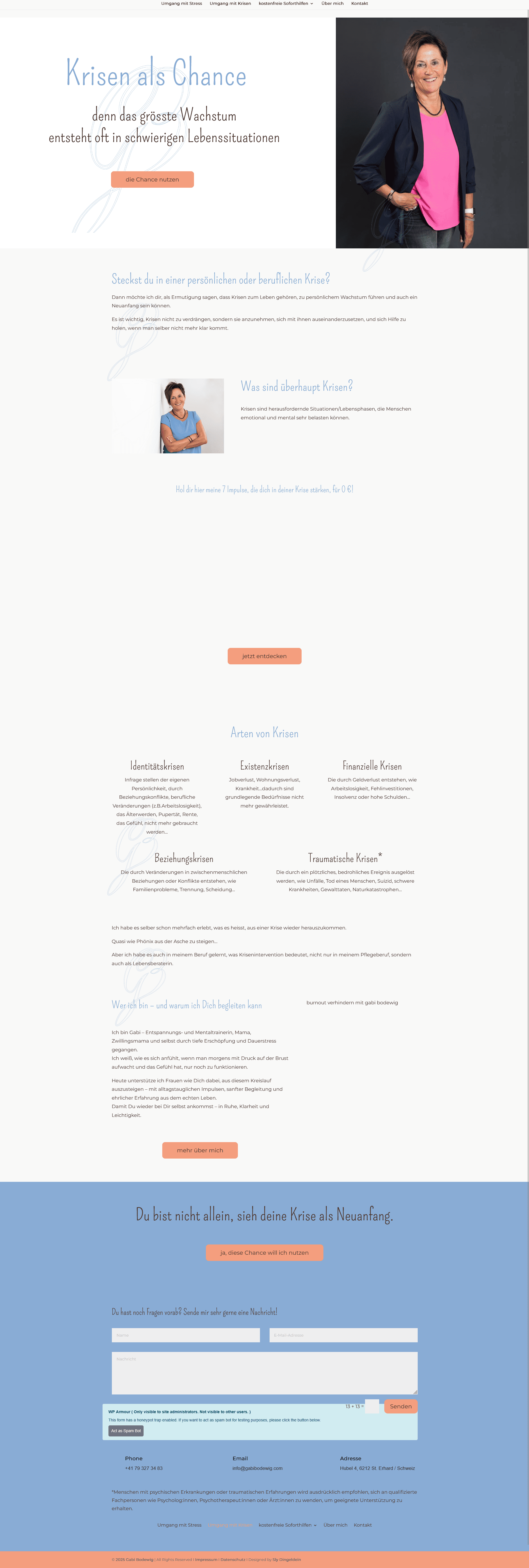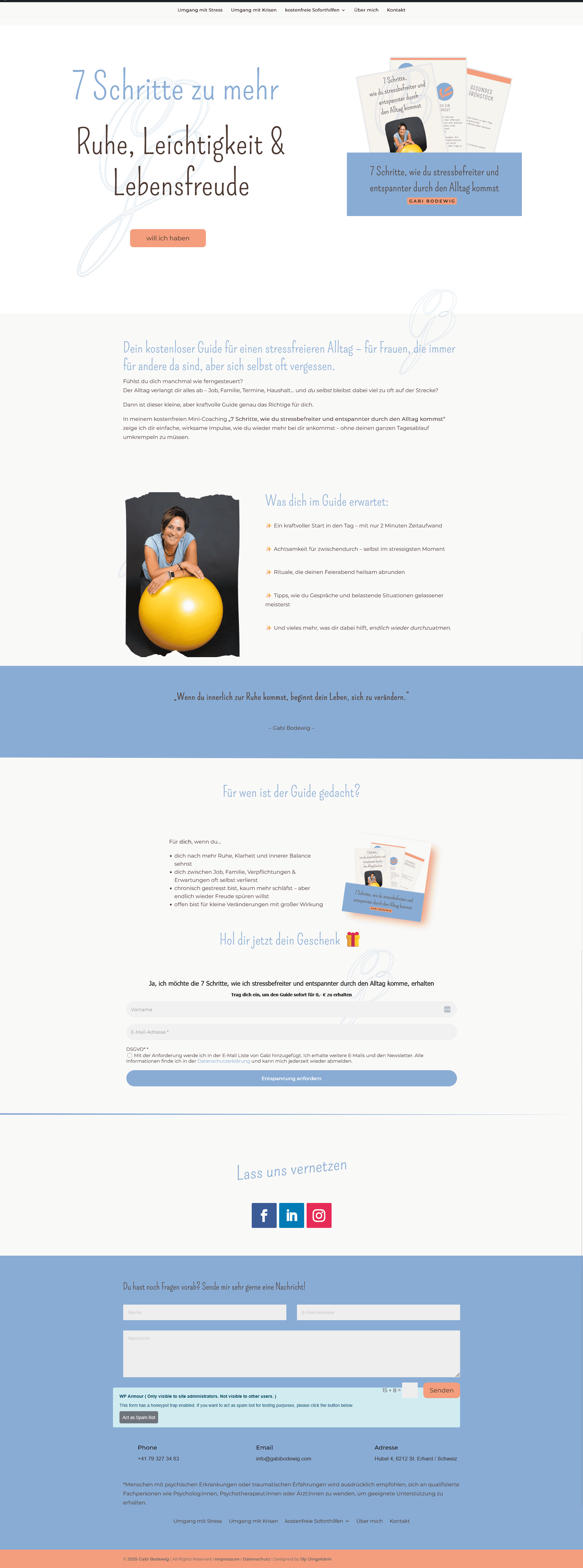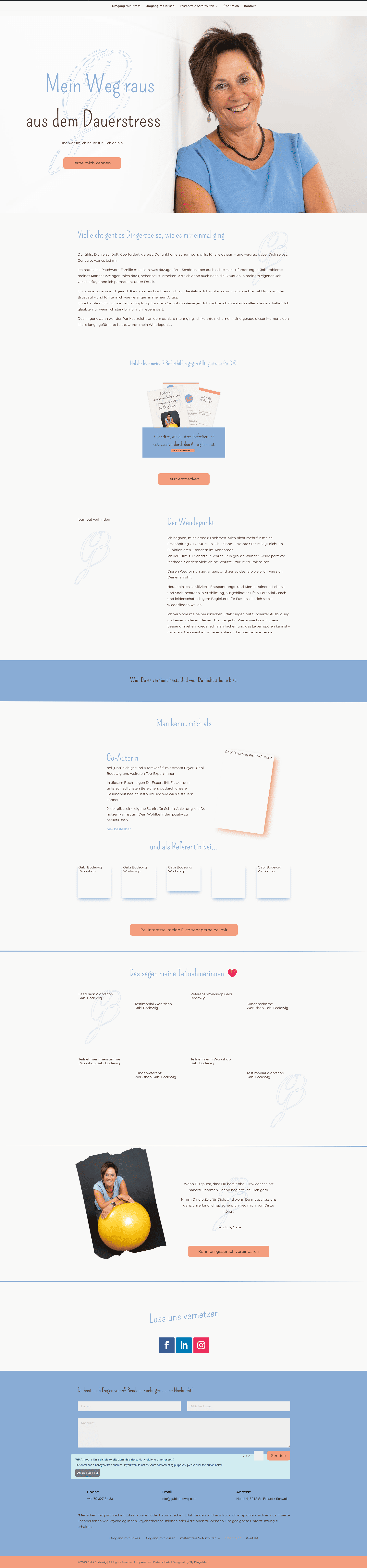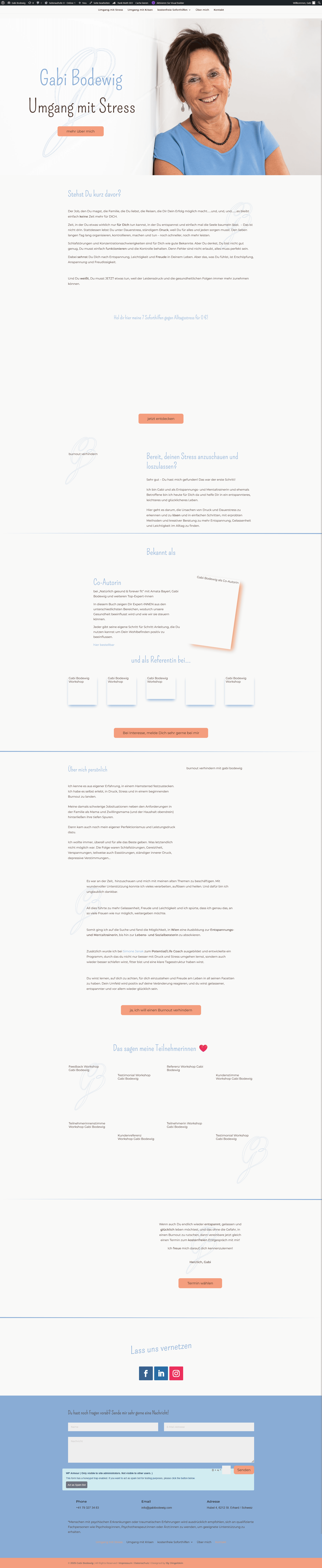 Nach und nach haben wir die Seite erweitert und ihr Angebot in zwei Hauptthemen gegliedert: Umgang mit Stress und Umgang mit Krisen. Dadurch wirkt der Auftritt heute nicht nur schöner, sondern vor allem logischer: InteressentInnen finden schneller das, was zu ihrer Situation passt – und Gabi kann ihre Inhalte klar führen, ohne ständig alles neu erklären zu müssen.