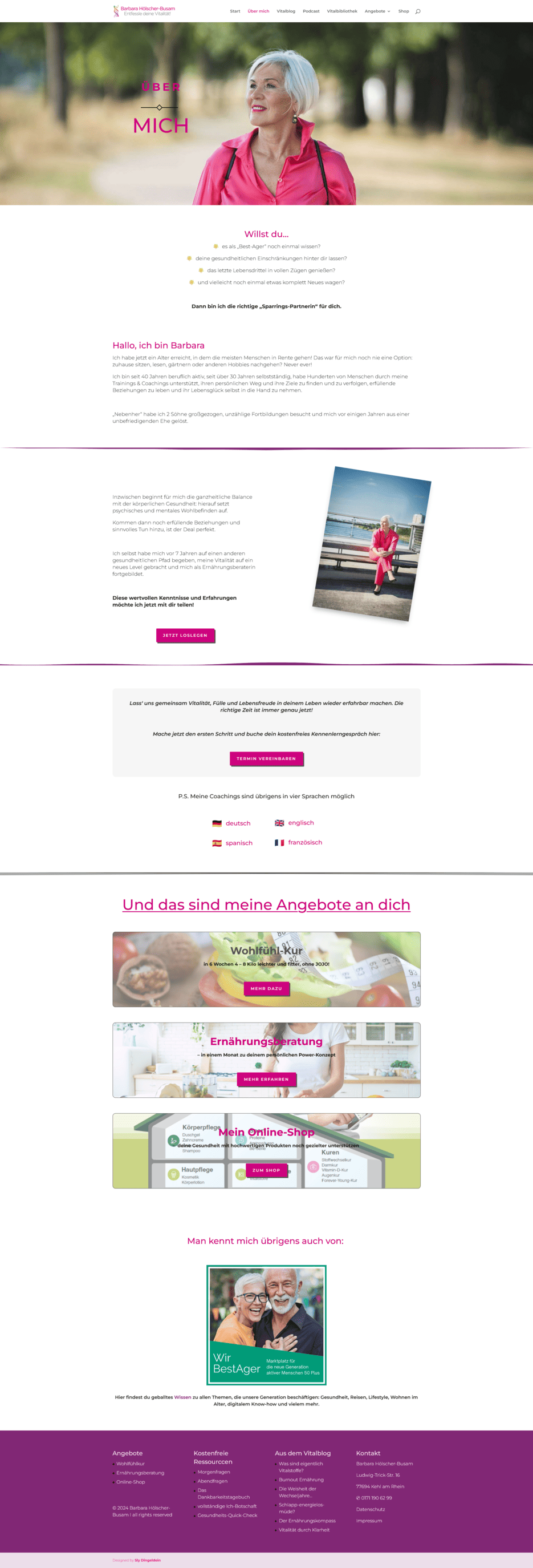 Also sind wir an die Wurzel gegangen: Positionierung geschärft, Inhalte sortiert und daraus eine Website-Struktur gebaut, die Menschen nicht überfordert, sondern führt. Die Wohlfühlkur wurde als zentrales Angebot klar aufgebaut, der VitalCheck als Einstieg integriert und die Nutzerführung so gestaltet, dass Interessentinnen schnell verstehen, was Barbara anbietet – und wie sie den nächsten Schritt gehen können.